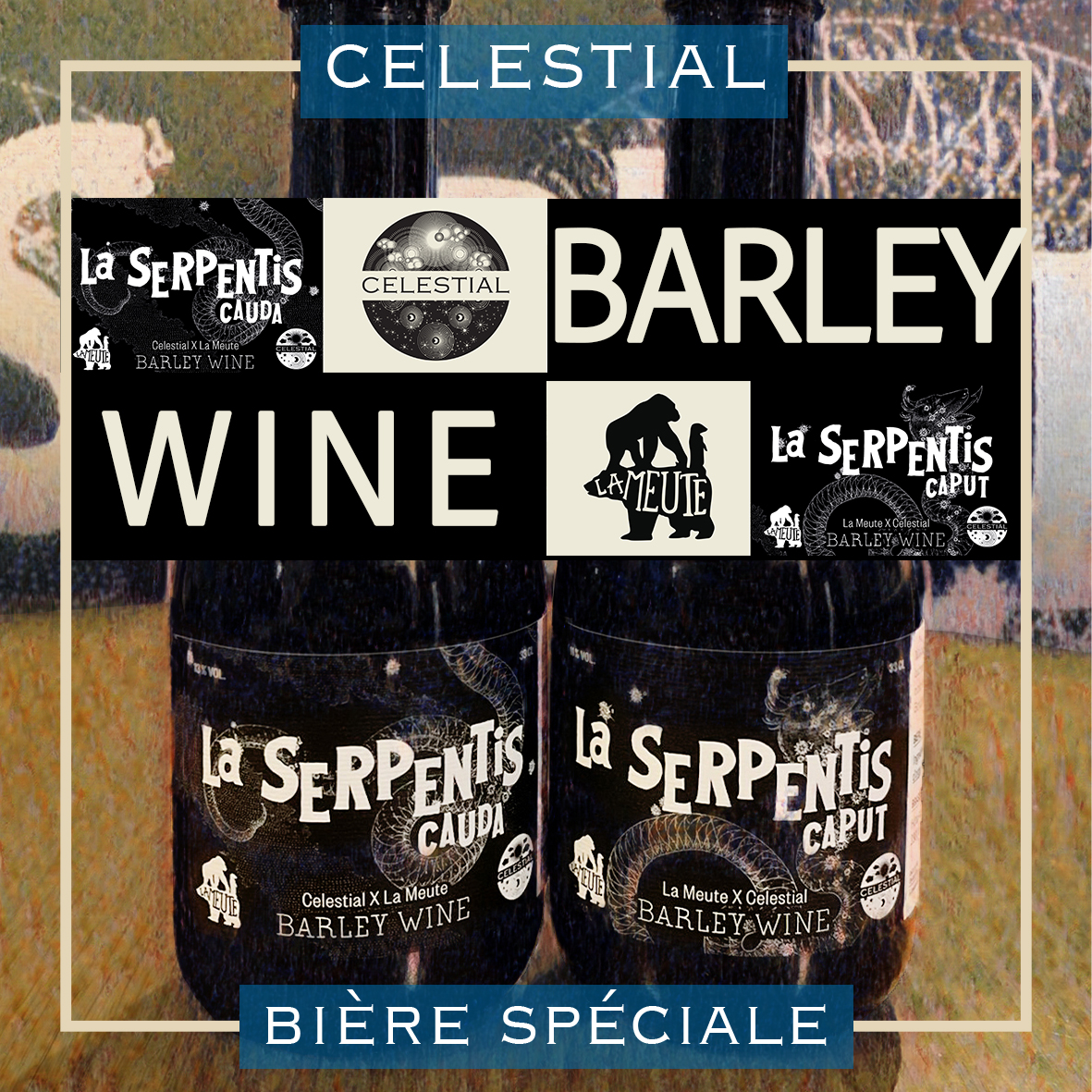 The barley wine is named after the only constellation divided into two parts: the Serpent. The head (Caput) represents La Meute’s location in the upper part of the canton and the tail (Cauda) Celestial’s in the lower part.